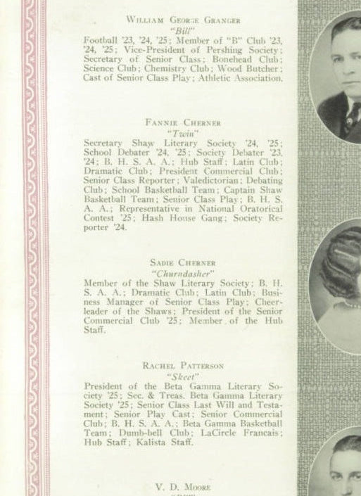 Class Play; Bone Head Club *25. *26: Commercial Club *25, ‘26; Athletic Association *24.