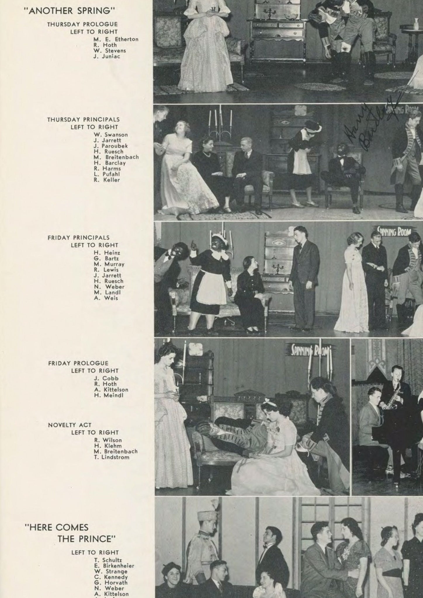 Win;am Aleckson will attend Northwestern to study accounting. Harry Barclay plans to be an aviator. Jack Baumhardt reports that he will work days and study at some business school evenings. Walter Betlinski would like to work this summer and travel later on. Secretarial work for Gladys Bischof. Walter Blothner intends to do some evening study at Carl Schurz High. Mary Breitenbach wants to work her way through the Federal Art School to study dress design and commercial art. Gladys Brunke will work this summer and enroll in a business college next fall. Barbara Ann Carl has no definite plans. Mary Chalupnick will seek work immediately. John Ciolac would like to take up work in television. Jane Cobb wants to be a dress buyer—professional, of course. Jean Coleman plans to attend the Northern Illinois State Teachers College to prepare for kindergarten teaching. Lawrence Conrad will work with his father. Violet Denley plans to take up a beauty culture course. Walter Erler would like to go to Detroit to study automotive engineering. Mary Ellen Etherton hopes to go to a teacher's college in Southern Illinois to prepare for first grade teaching. Evelyn Field wants work as a bookkeeper and hopes to attend college soon. Helen Floyd has decided to take a secretarial course next fall. Mary Ann Fuerst intends to be a secretary after further training. Virginia Gutman will attend college. Kenneth Hampton is going to the Utah State Agricultural College to study forestry and soil conservation. Ed ward Harms plans to return to Nilehi next fall for a post-graduate course of study. Dorothy Haupt wants to take a six-month secretarial course of training. Lorraine Hennig would like to enroll in some business college. Anna Hermes may go to Northwestern's School of Business this summer. Lucille Hezner may return for post graduate work next fall. Mathias Horvath will follow the building insulation business. Robert Hoth plans to work immediately after graduation. Kenneth Huels will probably return for post-graduate work. Irene Huscher has a secret ambition to go to college. Any phase of the aviation industry appeals to Taylor Ives. Jane Jarrett plans to go to college next fall and wants to become an interior decorator. Leonard Jorgensen has decided upon no particular line of work. Loretta Kawell plans a business school training. Research chemistry interests Ruth Keller. Alvin Kluesing has a job in a publishing house. Enrollment in a business school is Evelyn Koseck's next step. Helen Kottke wants as broad an educational background as possible. She plans to start with a nurse's training. George Krajchovich has no definite plans. Robert Kuhn is interested in aviation. Margaret Landl says she will probably pound away at a typewriter until the right man comes along. Roy Lewis is arranging to study medicine at Northwestern. Lorraine Maier is interested in the study of foreign languages and the teaching of dancing. Henry Meindl wants to find an employer. Rosemary Miller will matriculate in some downtown business college. Roy Moore plans to attend the Northern Illinois College of Optometry. Harry Mueller may attend the Utah State College of Agriculture to study forestry. Wilbert Mueller is already established in the upholstery trade. Margaret Murray would like to tour the world but fears she must first earn the wherewithal. Gene Nitch is too young to enroll in a nursing school, so she will return to Nilehi in the fall. Rita Nitch plans to work her way through a dress designing school. Jeannette Paroubek will do saleswork and Katherine Patenaude would like to be a doctor's or dentist’s assistant. Joyce Petty may go to an art school to specialize in commercial art. Louise Pufahl is going to Europe with her parents. Louise would like to take up secretarial work upon her return. Walter Rau has no definite plans, but he yearns to travel. Louise Reimann hopes to earn enough to see her through a business school. Meria! Risinger hopes the same. Rosalie Rizzo has nothing unusual in prospect: she plans to go to work immediately. Harold Ruesch is planning to travel extensively this summer in the East. In the future, Harold plans to study some branch of engineering. The study of medicine appeals to Warren Runnfeldt, and he will probably attend Northwestern. Ray Schultz wants to attend college some day, but for the present he is going to work. Clifford Sorensen plans to attend Wright Junior College. The legal profession beckons William Swanson. Dorothy Taylor would like to be a journalist. Frances Thlimmenos wants to teach foreign languages, English, and art. Carolyn Throop will attend a business college, work a year or two, and eventually attend Northwestern University or Beloit College. A business college is on the schedule for Elizabeth Tierney. Helen Tilges may become a telephone operator. Agnes Weis plans to enter a nursing school in the fall. Paul Wertz plans to attend the Colorado College of Agriculture to study forestry. And the whole problem of bread-winning clouds the future of Charles Zerdavas.