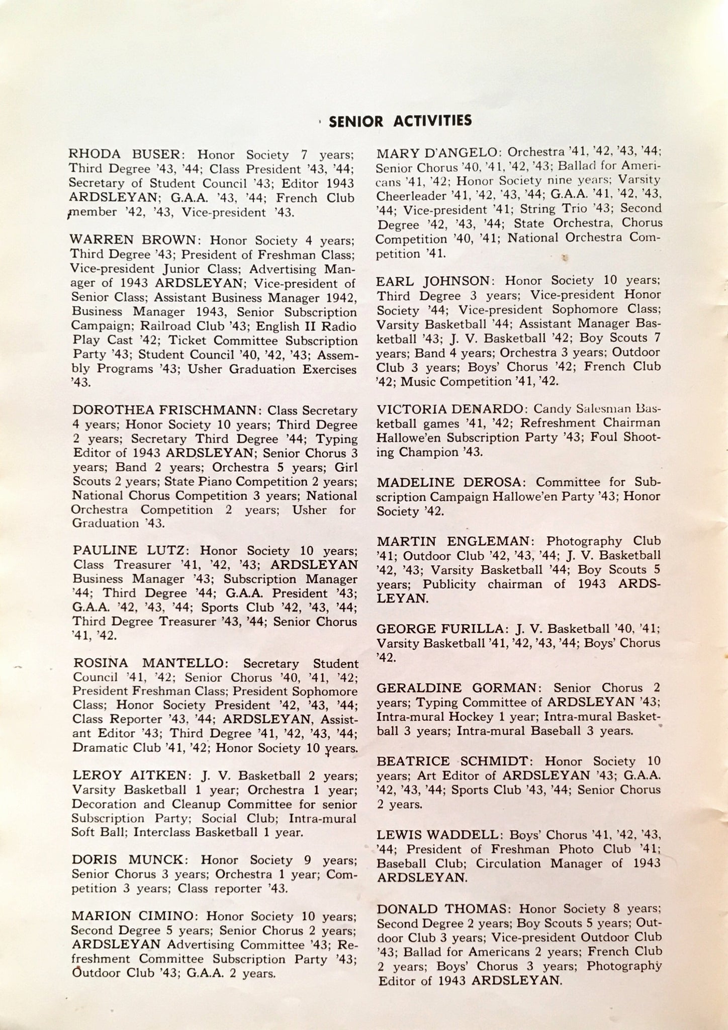 The pictures in this 1944 ARDSLEYAN — with the exception of the senior