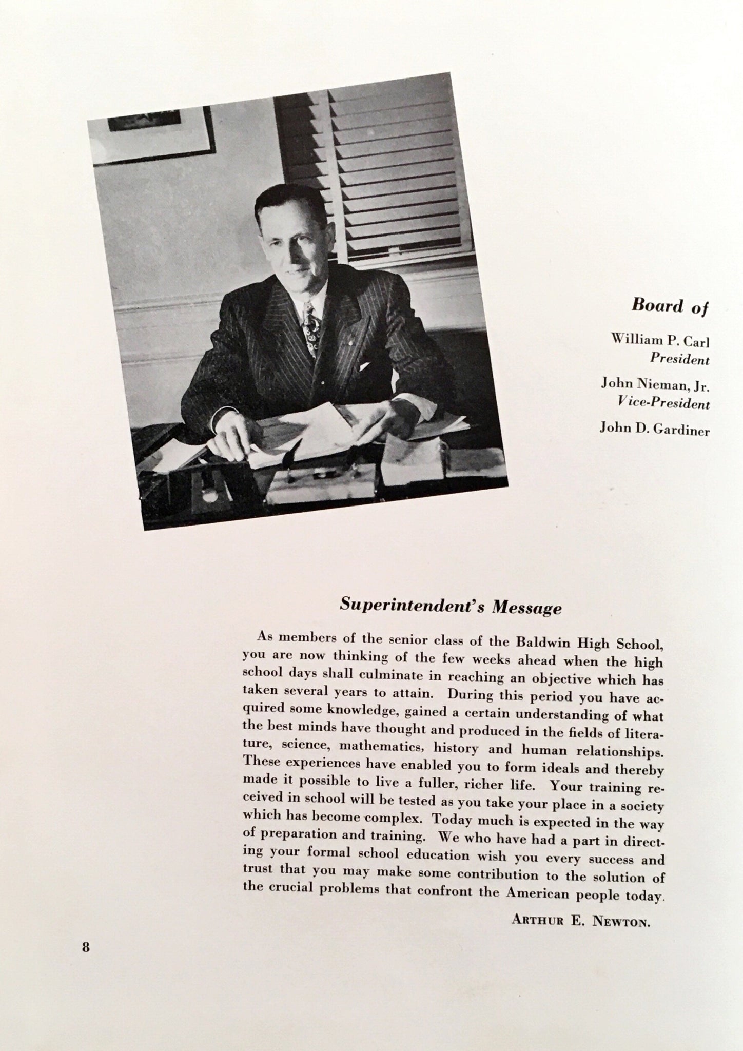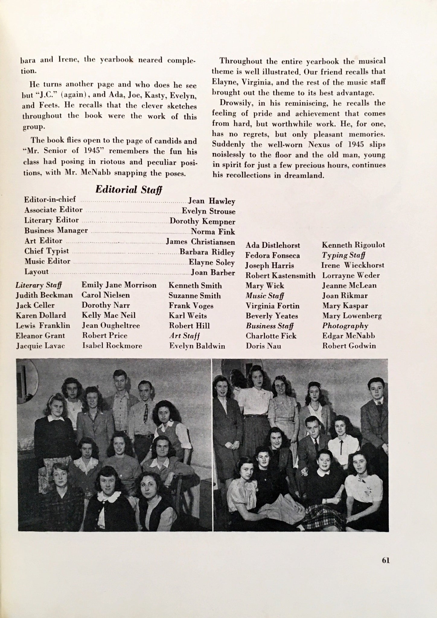 Digital download of 1945 Baldwin High School yearbook in Nassau County, NY. This item is a scanned copy of the original yearbook. This yearbook has some photos of the school and students. The yearbook also has information about students and activities at the school. The yearbook has approximately 102 scanned pages. The name of the yearbook is The Nexus 1945. Baldwin is a hamlet in the Town of Hempstead, located in Nassau County, New York. ***DIGITAL DOWNLOAD ONLY (PDF Format File)*** Please review all of the sample photos in the yearbook. Send us a message if you want us to check to see if a name is in the year book.
