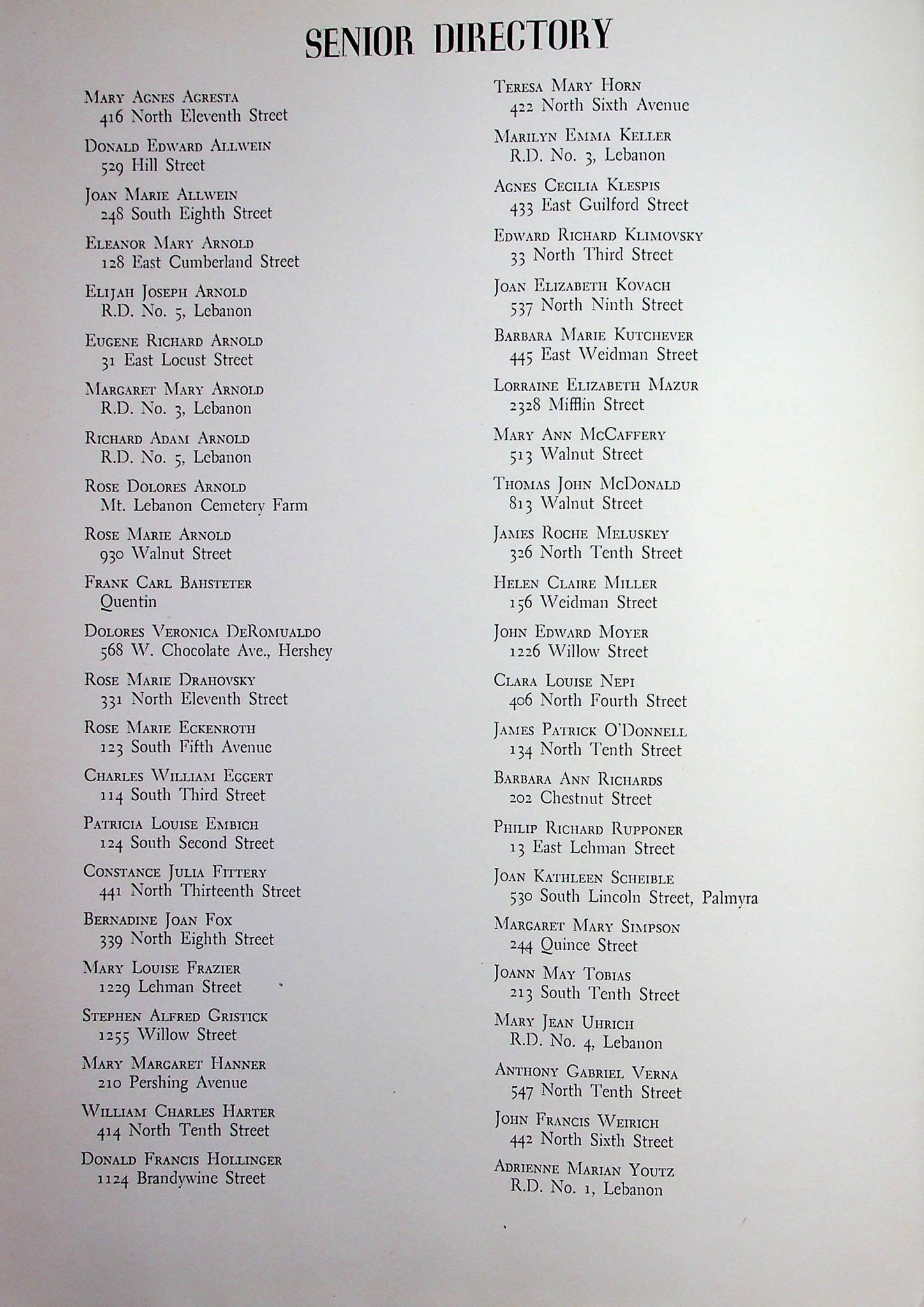 Digital download of 1950 Lebanon High School yearbook in Lebanon, PA. This item is a scanned copy of the original yearbook. This yearbook has some photos of the school and students. The yearbook also has information about students and activities at the school. The yearbook has approximately 120 scanned pages. The city of Lebanon is located in Lebanon County, Pennsylvania. The name of the yearbook is The Spires 1950. ***DIGITAL DOWNLOAD ONLY (PDF Format File)*** Please review all of the sample photos. Send us a message if you want us to check to see if a name is in the book.