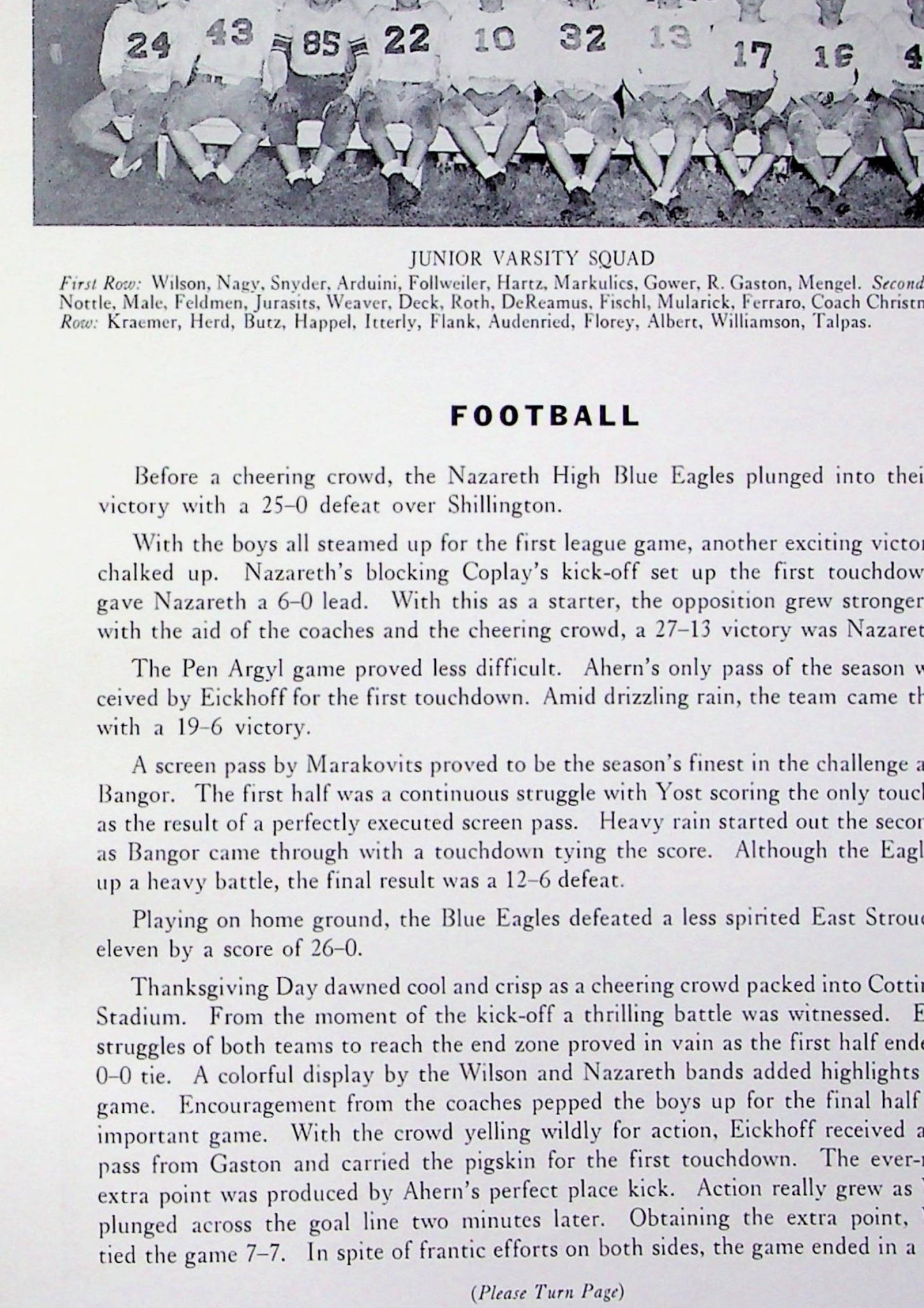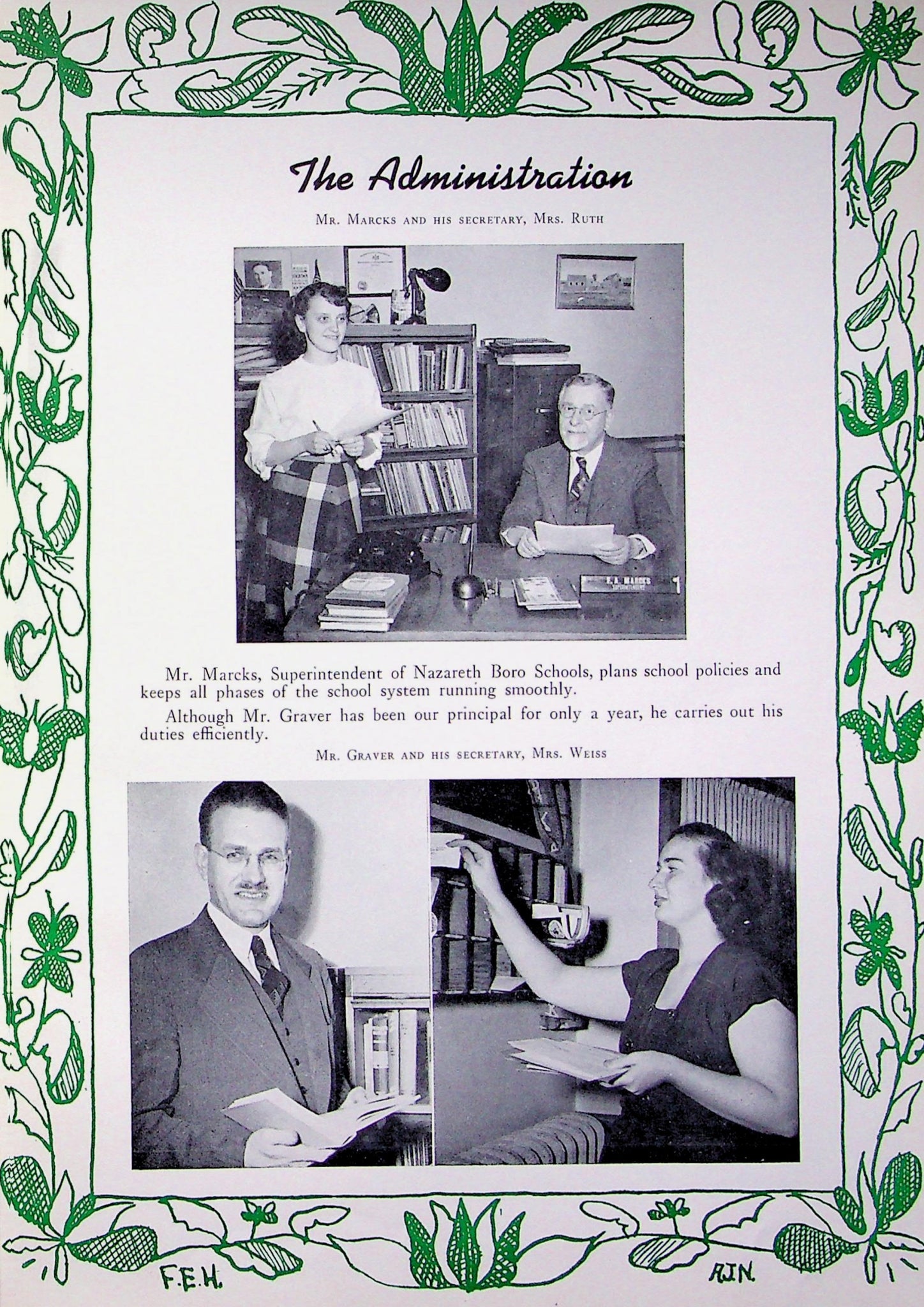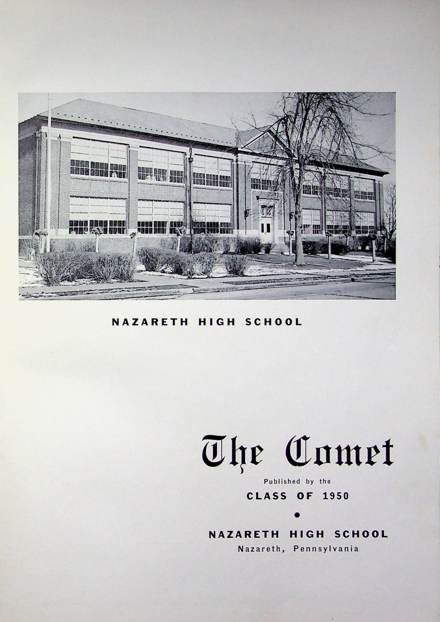 Digital download of 1950 Nazareth High School yearbook in Nazareth, PA. This item is a scanned copy of the original yearbook. This yearbook has some photos of the school and students. The yearbook also has information about students and activities at the school. The yearbook has approximately 112 scanned pages. The borough of Nazareth is located in Northampton County, Pennsylvania. The name of the yearbook is The Comet 1950. ***DIGITAL DOWNLOAD ONLY (PDF Format File)*** Please review all of the sample photos. Send us a message if you want us to check to see if a name is in the book.