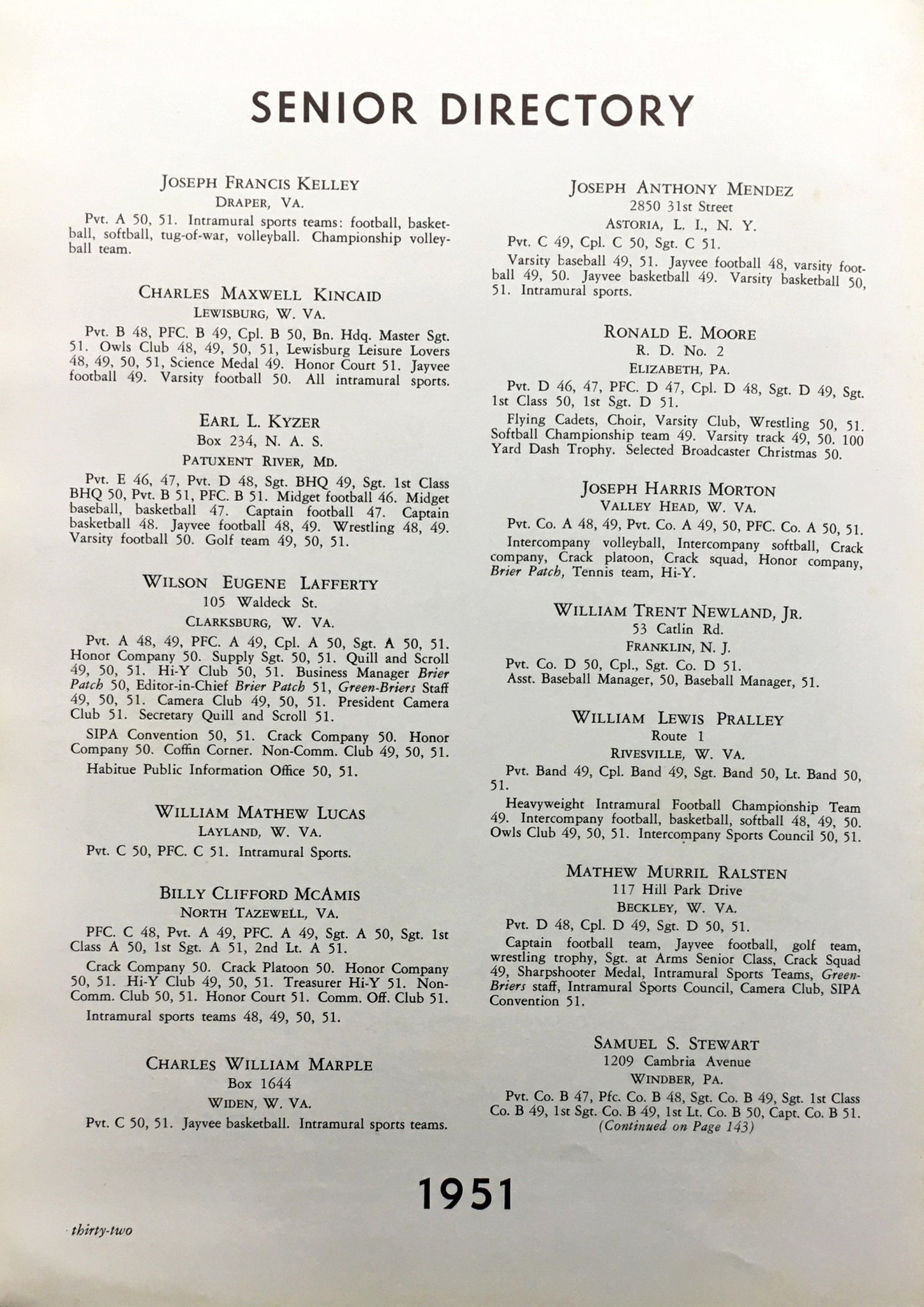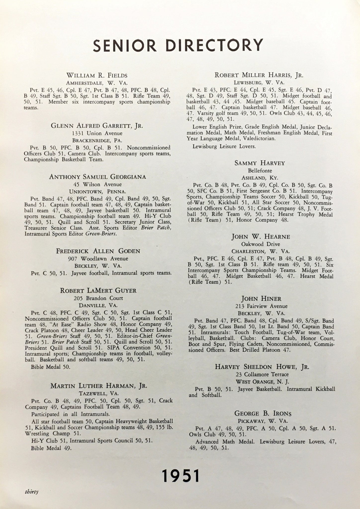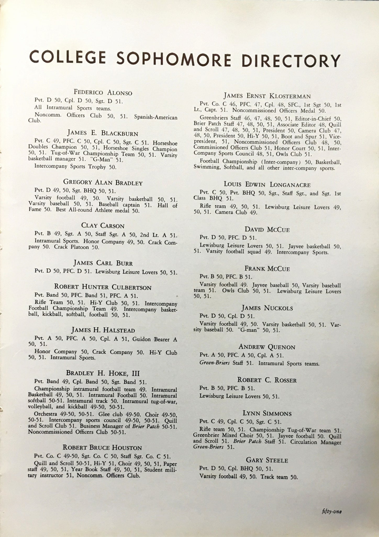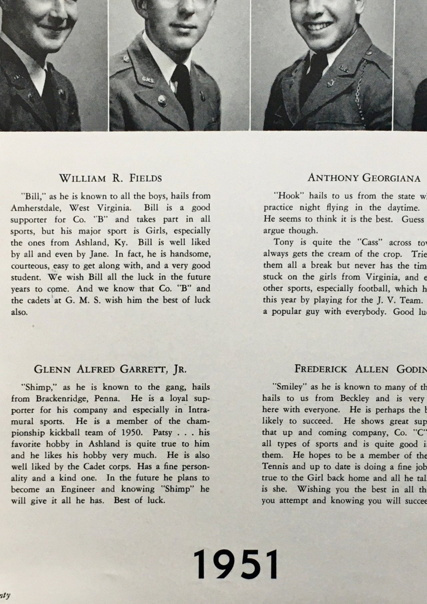 Cadets during 1951 serve to bring back to you fond memories of the past, the