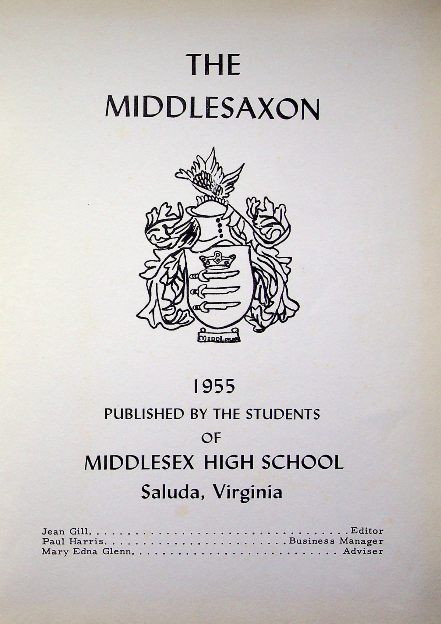 Digital download of 1955 Middlesex High School yearbook in Saluda, VA. This item is a scanned copy of the original yearbook. This yearbook has photos of the school and students. The yearbook also has information about students and activities at the school. The yearbook has about 88 scanned pages. Saluda is a town in Middlesex County, Virginia. The name of the yearbook is The Middlesaxon 1955 ***DIGITAL DOWNLOAD ONLY (PDF Format File)*** Please review all of the sample photos. Send us an email if you want us to check to see if a name is in the book. There is original handwriting in this scanned copy of the book.